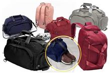 Bolsa esportiva de 32 litros em poliéster resistente à água com cinco compartimentos, sendo três deles exclusivos para tênis, itens molhados e armazenamento das alças de costas. Com alça transversal removível e alça de mãos com suporte de juntura, a bolsa contém alças para as costas ocultas no compartimento inferior, podendo ser transportada como mochila. Medidas: Altura: 27cm x Profundidade: 25cm x Comprimento: 48cm. Personalização em 1 cor já incluso.