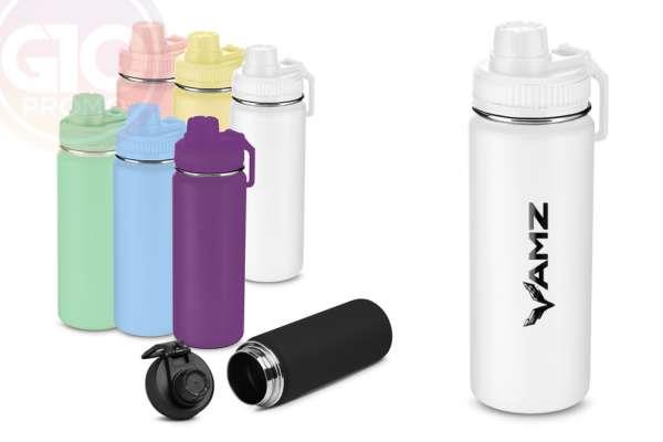 Garrafa Aço Inox - GGA890... Garrafa em aço inox com capacidade de até 780 ml. Tampa rosqueável com anel de silicone, alça plástica em formato de mosquetão e bico rosqueável para fácil...