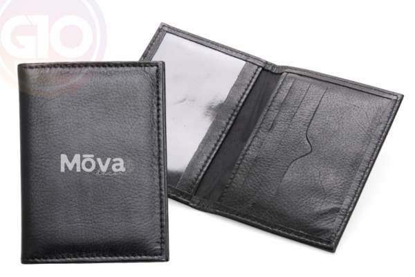 Porta-Cartão Couro - G153... Porta-cartão em couro personalizado, porta cartão com três divisórias para cartões e documentos, além de um bolso adicional com visor em plástico transpare...