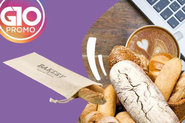Sacola para Pães Personalizada, sacola para pão 100% algodão (100 g/m²) com cordão para fechar. 220 x 560 mm. Gravação em silk 1 cor já incluso.