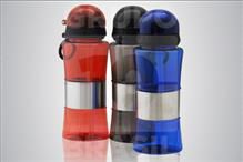 Squeeze de plástico resistente com detalhe em Inox, capacidade para 400 ml. Uma gravação já inclusa.